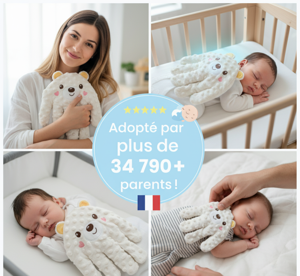 La main de Morphée™ recrée la sensation rassurante de votre main qui tapote doucement, pour des nuits complètes, des réveils apaisés, et un développement sain dès la naissance.
